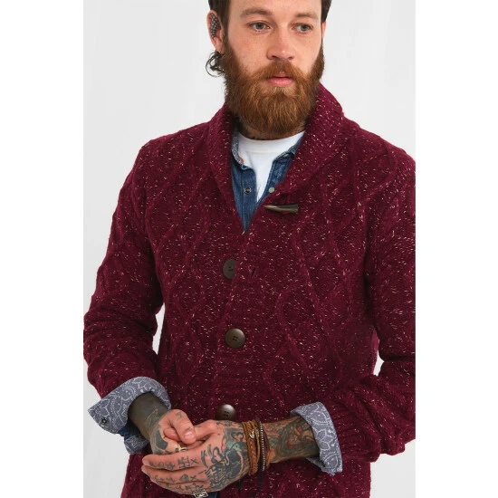 A classic with a modern twist, this chunky cable knit cardigan is full of unique details. Knitted Fabric. Approx Length: 70cm.