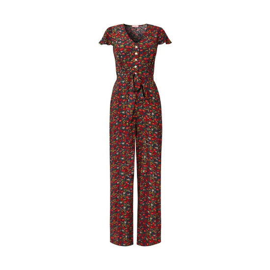 Joe Browns Red Ditsy Floral In Bloom Button Up Jumpsuit