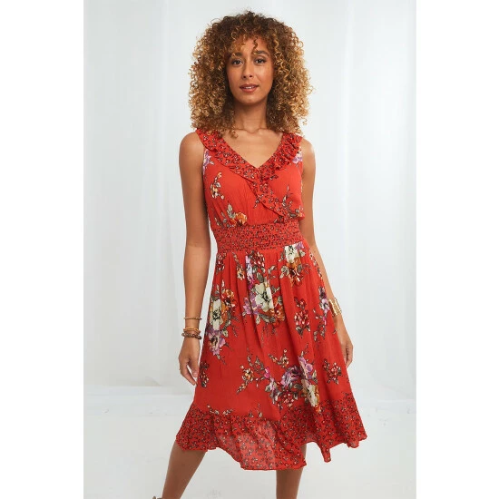 This dress will make a real statement this summer, especially with its bold colour, frill detailing and mix of floral prints. You’ll feel so pretty showing off your figure in it too – its wrap over bodice and waistband will hug you in all the right places. Team it with your favourite sandals for a stylish look that’s ready to have fun in the sun.
