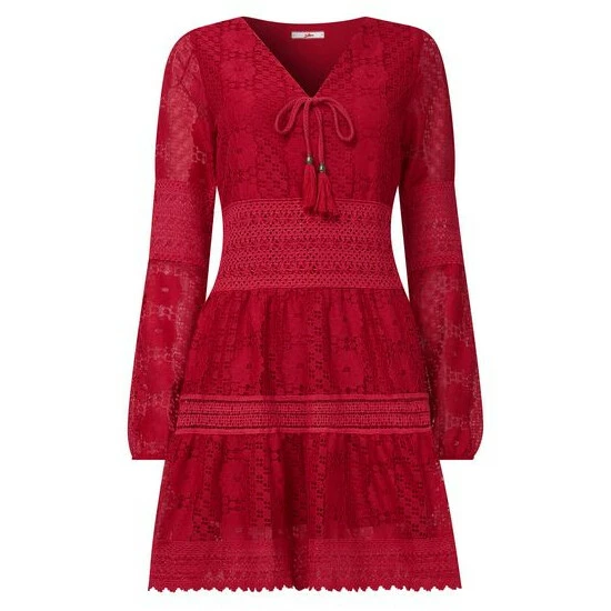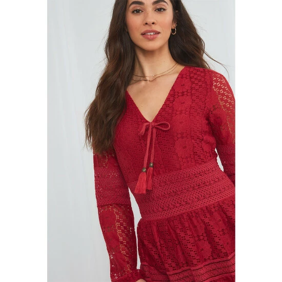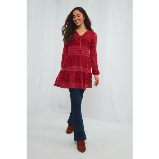 We can’t get enough of this stunning lace tunic. In a rich, red colour with exquisite all-over lace fabric, it gives us real boho vibes. Finished off with a lined bodice, elasticated cuffs and a tassel tie trim at the neckline, it’ll go perfectly with plain leggings to make up your statement summer outfit.