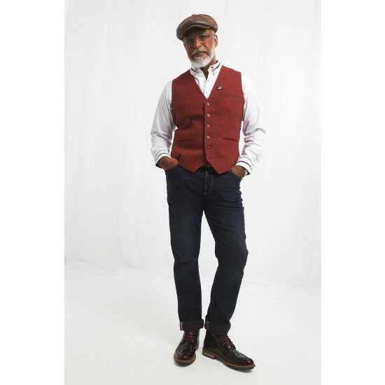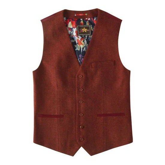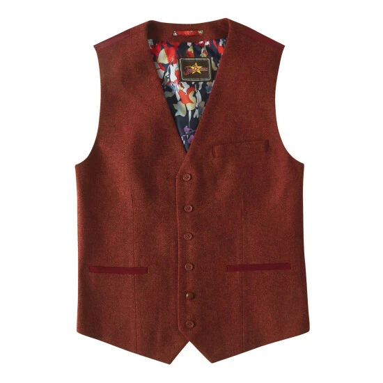 A classic men’s waistcoat with a twist, this remarkable style has a striking rust colour.Woven Fabric. Approx Length: 58cm.