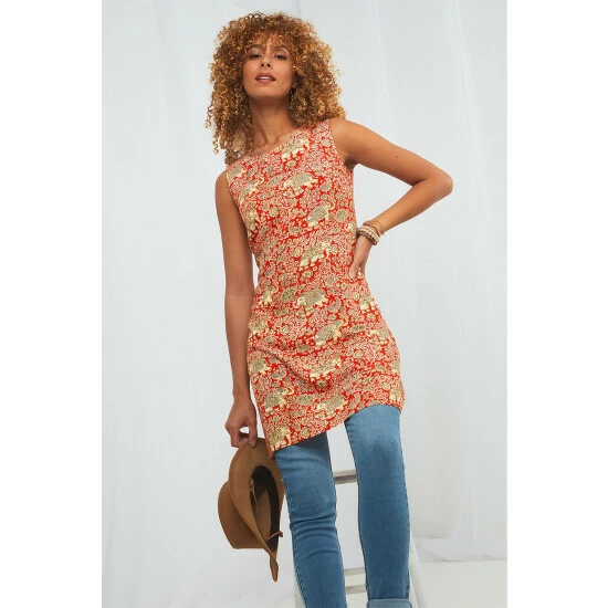 Think holidays, sunsets and safaris with this gorgeous tunic. Covered in a playful pattern of elephant print, it’s sure to add a pop of personality to your summer wardrobe. With a round neck and side zip, it’s so easy to style too, for an effortless, charming look that you’ll love to wear over and over again.