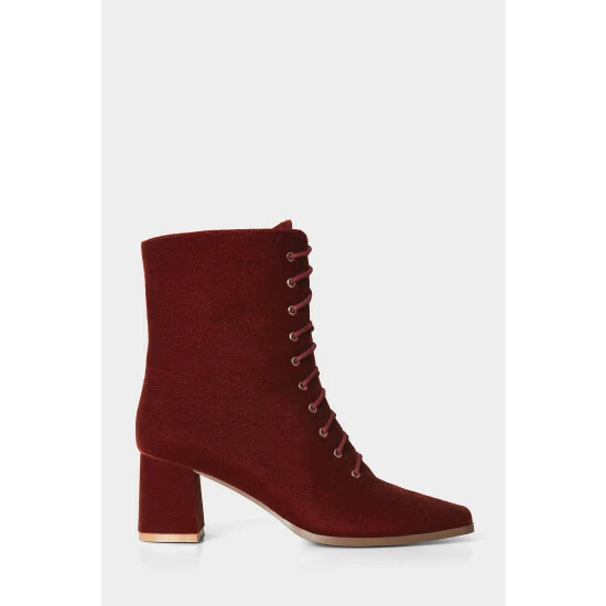 Boasting a square toe and pretty lace up front, you’ll look enchanting in these velvet boots.