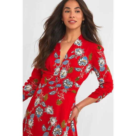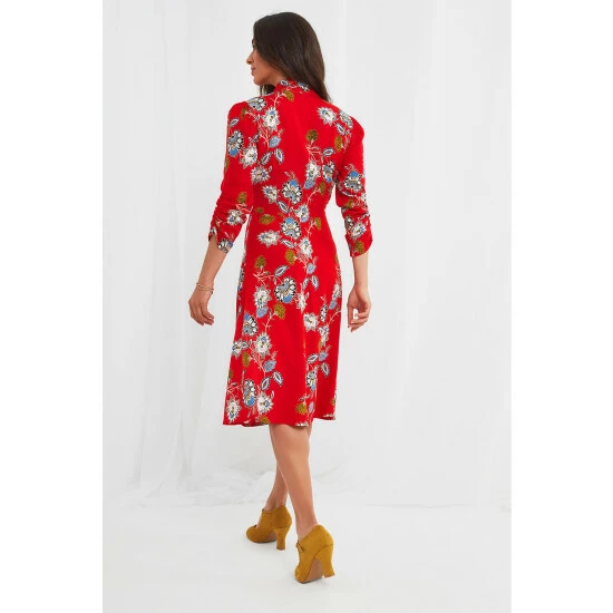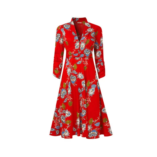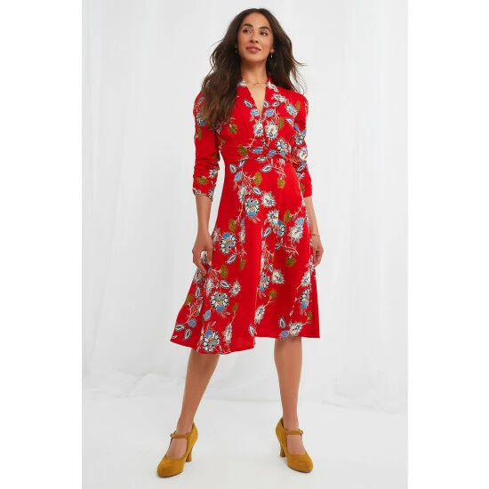 Joe Browns Red Vintage V Neck Abstract Floral Dress