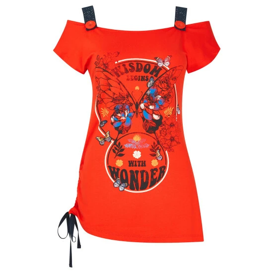The perfect base for an easy going, laid-back look, this unique tee is just what your wardrobe needs. Rocking some ruche detail on its side, a statement strap and inspirational quote, it’s stylish and eye-catching. Just add your favourite jeans or shorts and you’ll feel ready to take on the world.