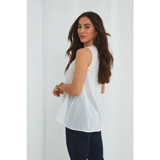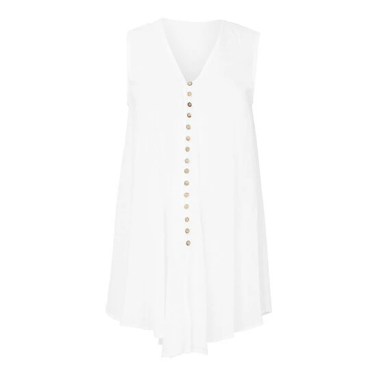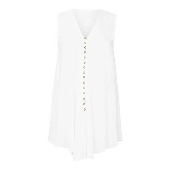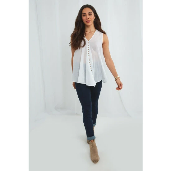 A perfect piece for summer, this blouse proves there’s beauty in simplicity. Teaming a stylish V neck and floaty shape, it’s flattering for any figure – and because it’s sleeveless, you’ll always get the sun on your shoulders on those gorgeous summer days. Finished with cute button detailing, this blouse adds a touch of class to any jean-shirt combo.