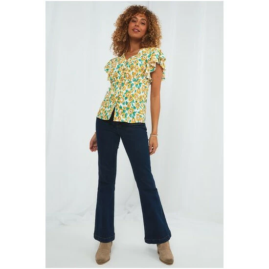 Look stunning in sunflowers with this statement blouse. It’s pretty and vibrant, and because it comes in a button-through style with gorgeous frill sleeves, it has a flattering, feminine fit that’ll really put a spring in your step. Pair it with your favourite Joe Browns jeans for a stylish, summery look.