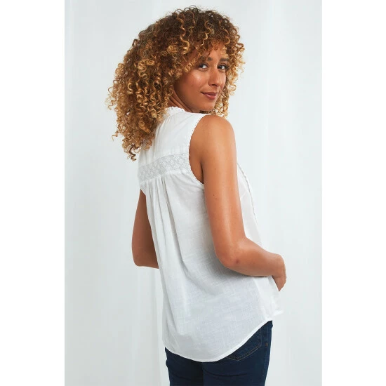 Beautiful and elegant, you’re sure to turn heads in this embroidered button-through blouse. You’ll love its exquisite lace detailing and intricate frill collar – they add a real splash of character to any look. Just pair it with your favourite skirt or black skinny jeans for a simple, classic style.